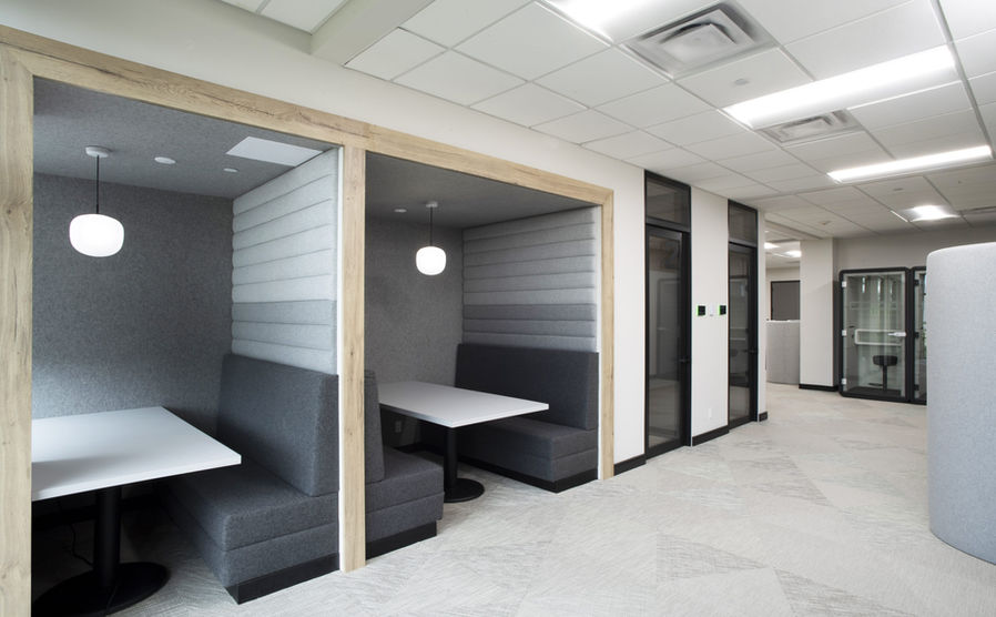 Designed by KD Interiors, Hannover Re's new offices feature eye catching wall treatments, clever sound-absorbing accents and boardroom ceiling baffles from Turf Design.